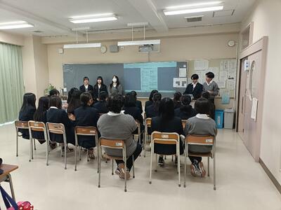 12月16日(火)、2学年の「総合的な探究の時間」で探究したテーマについて発表会が行われました。今年度は体育館ではなく、発表内容がよく聞き取れるように各教室で行いました。様々なテーマの発表の後には、質疑応答があり、1,2年生の生徒に加え、参加された保護者や、来校者の方に評価していただきました。