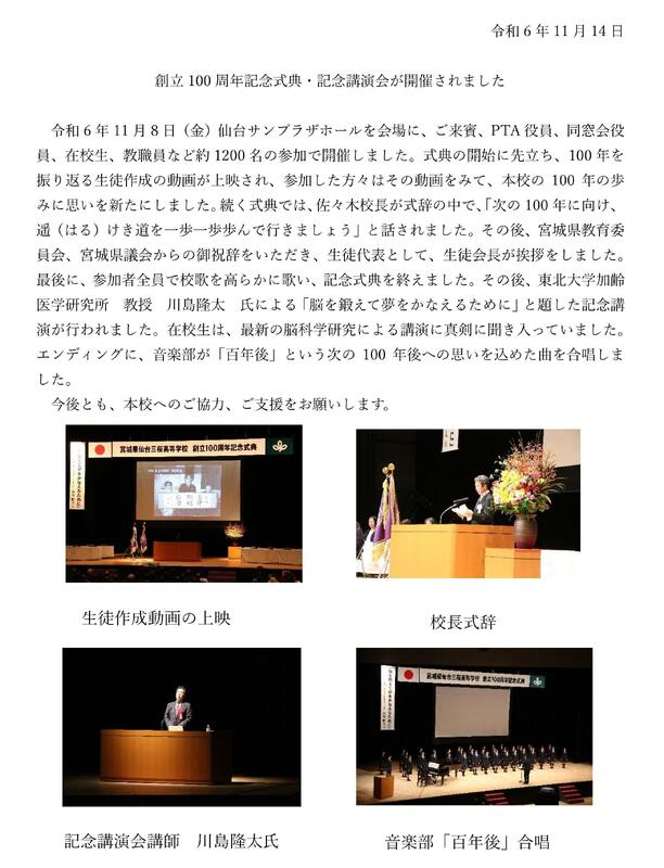 今日植えた三本目の桜は、仙台三桜高校の新たな歴史の一ページとして刻まれました。私たち三年生はもうすぐ卒業してしまいますので、後輩のみなさんに三桜生としての大切な精神を引き継いでいって欲しいと思います。