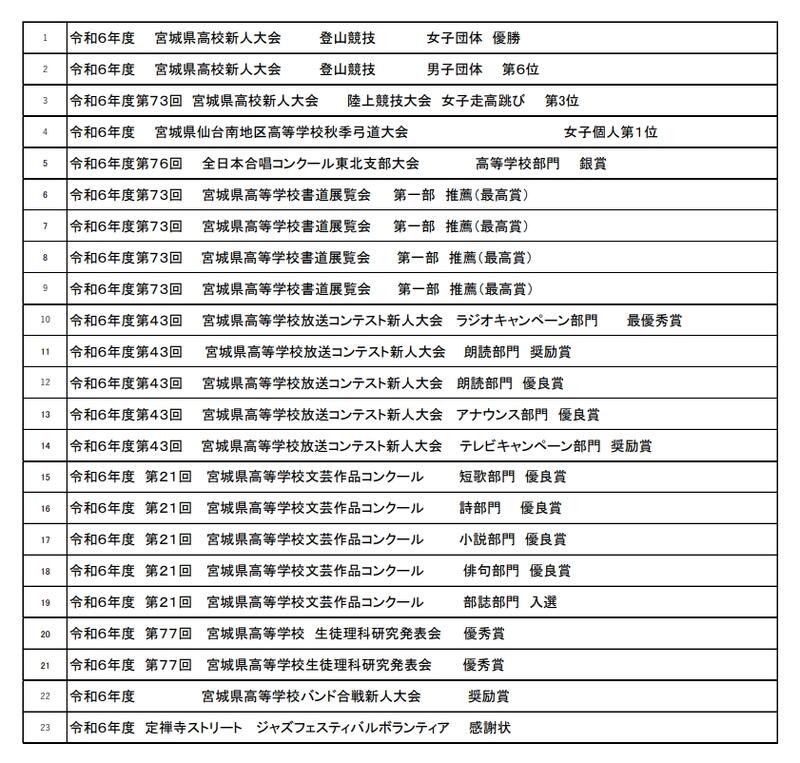 先日行われた宮城県高校総体の結果報告と、東北大会に出場する部活動の壮行式が行われました。