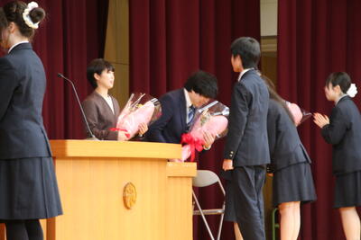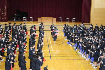 3月1日、3年生、教職員、3年生の保護者の方々、来賓の方々、2年生が参列し、3年生に卒業証書が授与されました。現生徒会長の送辞、前生徒会長の答辞には、それぞれ卒業生と在校生に向けた心のこもったメッセージが込められていました。卒業生のみなさんのこれからのご活躍を期待しています。