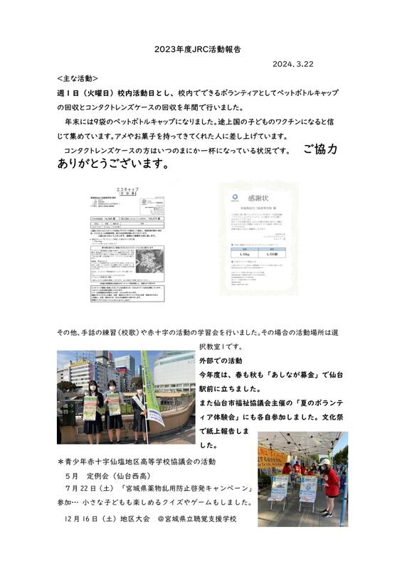 JRCとは、青少年赤十字(Junior Red Cross)の略称です。